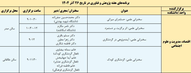 به مناسبت هفته پژوهش و فناوری، دانشکده اقتصاد، مدیریت و علوم اجتماعی برگزار میکند: